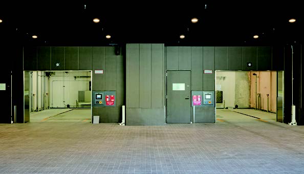 導入されたのは、日精の水平循環方式「フレキシブルパーク」。限られた敷地を最大限に活用できるこのシステムで25台収容と48台収容の2基73台の収容を可能としています。