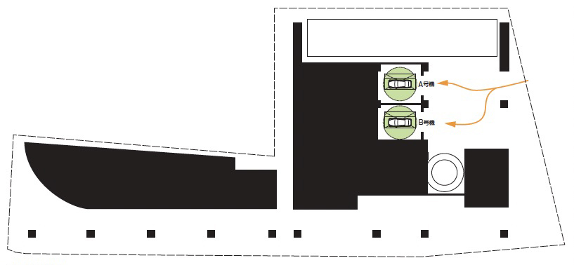 25台収容は、収容台数を優先し平面空き1枚で循環を行い、48台収容は、平面空き2枚で循環を行う事で循環効率を上げ収容台数を多く確しています。